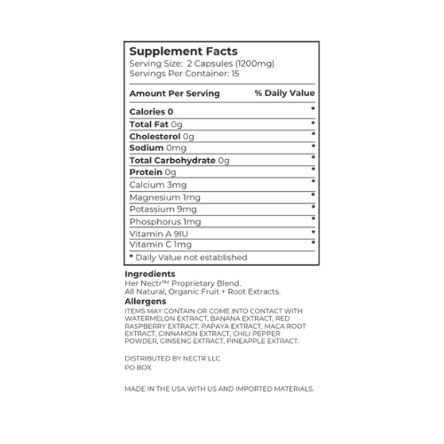 Ingredients: Nectr™ Proprietary Blend. All Natural, Organic Fruit + Root Extracts.